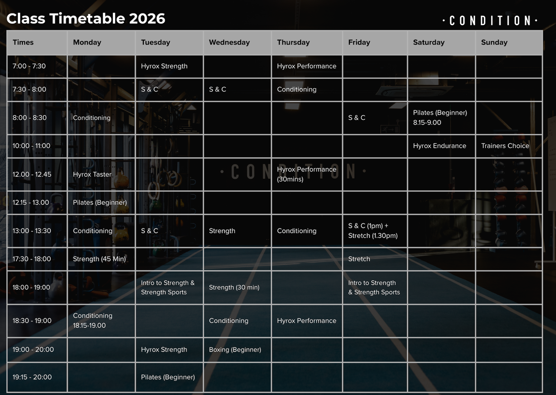 Click here to view our updated class timetable for 2026.